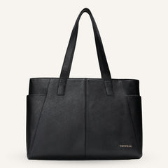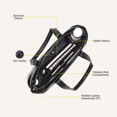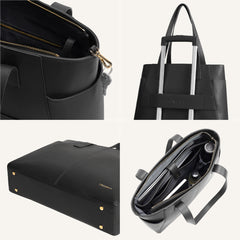 Every detail is intentional. The structured silhouette holds its shape through long days, while reinforced top handles offer a balanced, comfortable grip. A detachable shoulder strap allows seamless transitions between hand-carry and over-shoulder wear. The wide-opening zipper ensures effortless access to everything inside, and the padded laptop compartment keeps your tech protected without compromising elegance. Designed to carry your day — not weigh it down.